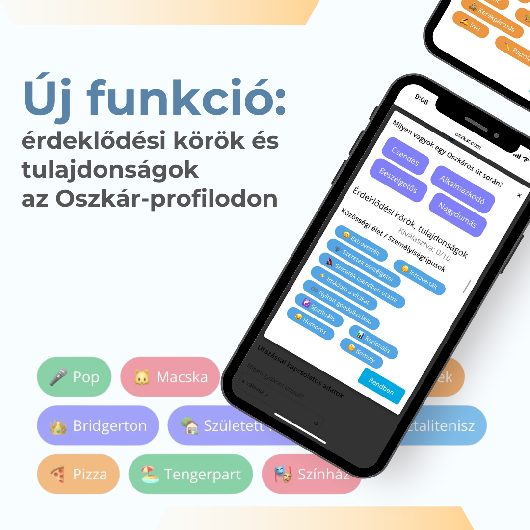 2025-ben több olyan fejlesztés is érkezett az Oszkárra, amelyek nemcsak az utazás szervezését, hanem magát az együtt utazás élményét is jobbá tették. Az egyik legnépszerűbb újdonság az érdeklődési körök bevezetése volt, amelyekkel mindenki személyesebbé teheti a profilját.